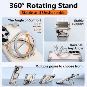 Oatsbasf Transparent Case With Ring Kickstand 360 degree Rotable Magnetic Bumper
