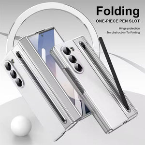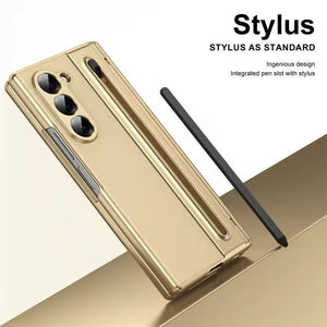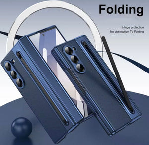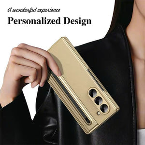 Samsung Galaxy Z Fold 5 Leather Texture Case With Front Glass & Side Hinge